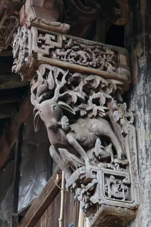 越过门槛,行数步,一抬头便是精美绝伦的牛腿,雕刻精细,栩栩如生。